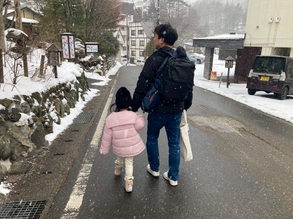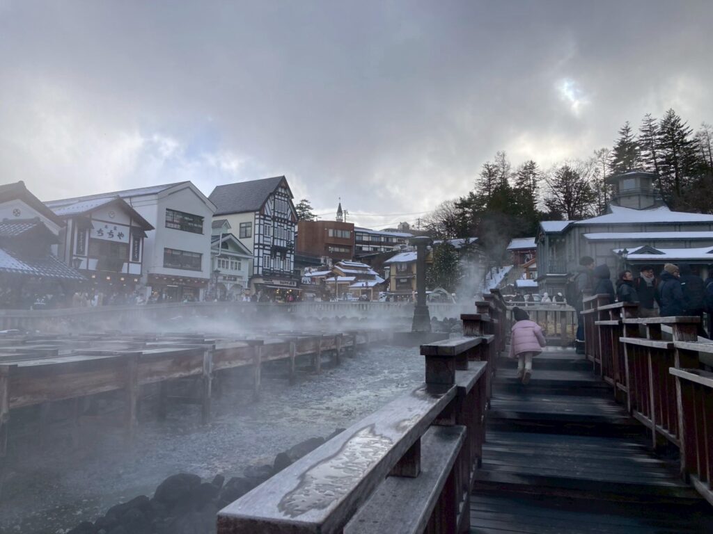 雪の温泉街は、キンと冷たい空気と温泉の湯けむり、外の冷たさと温かい室内のギャップも情緒がある体験だったけれど、正直回っている最中は大変で味わう余裕はなかったです。(思い返すと素敵な景色でした。笑)